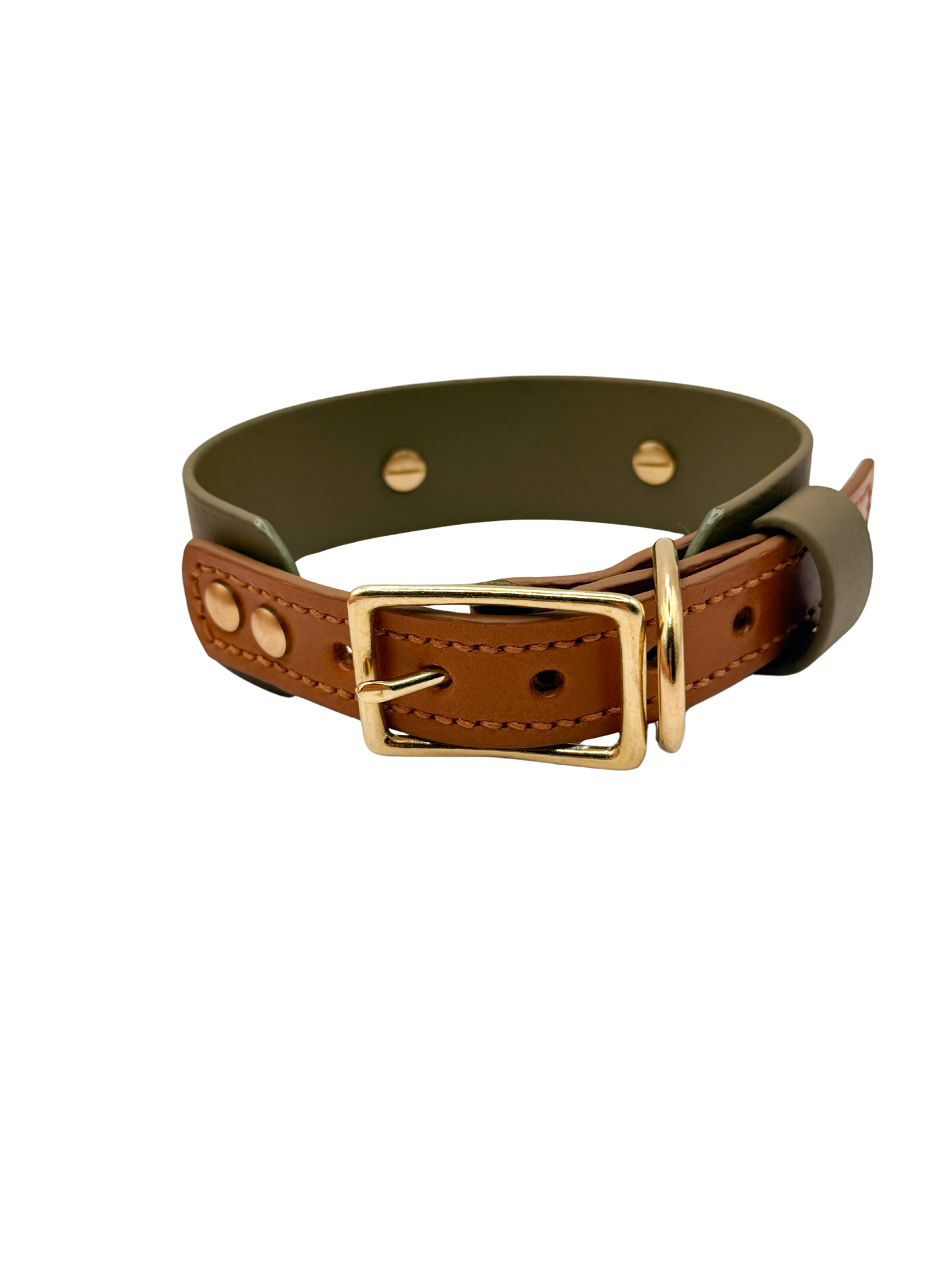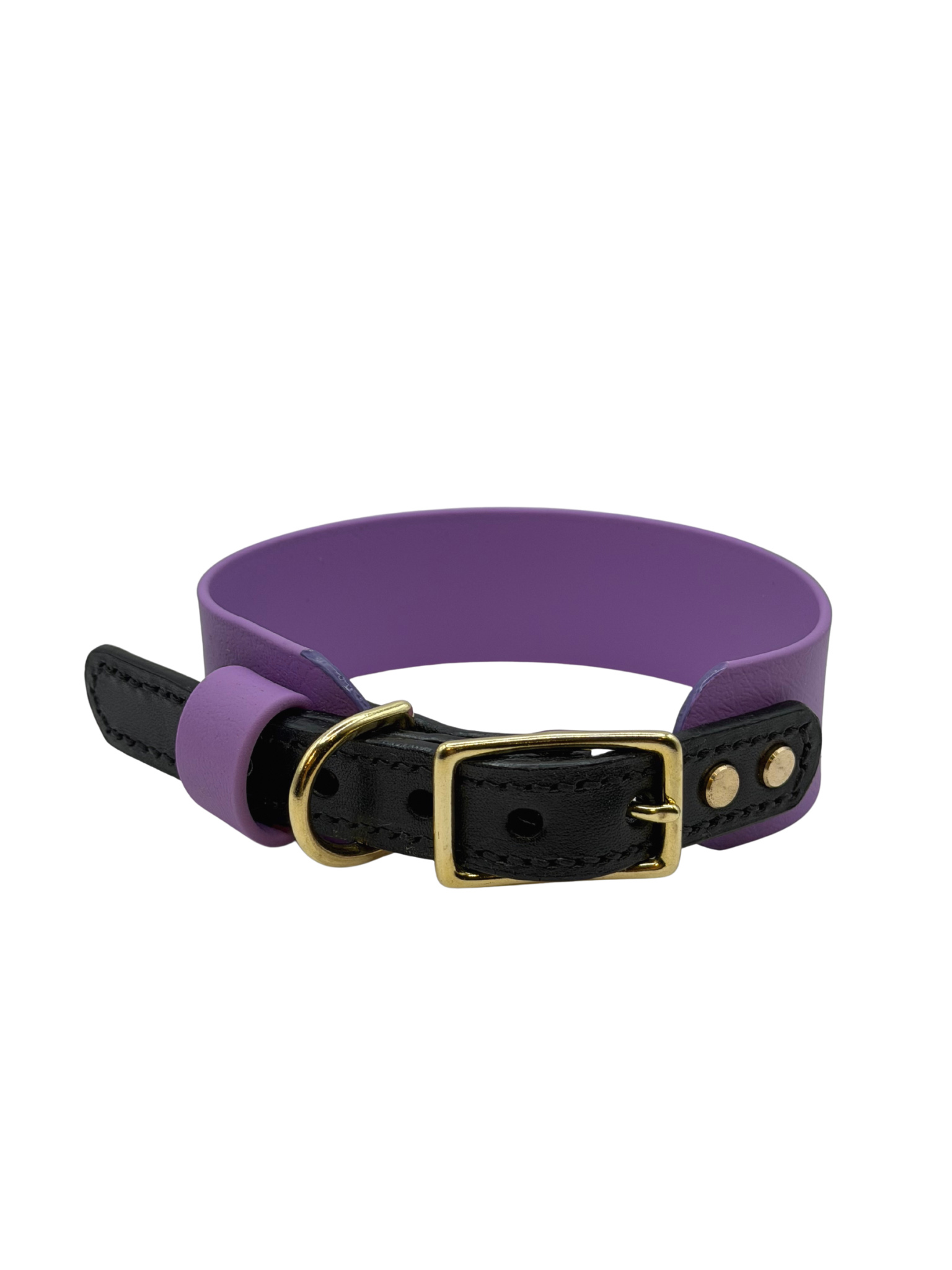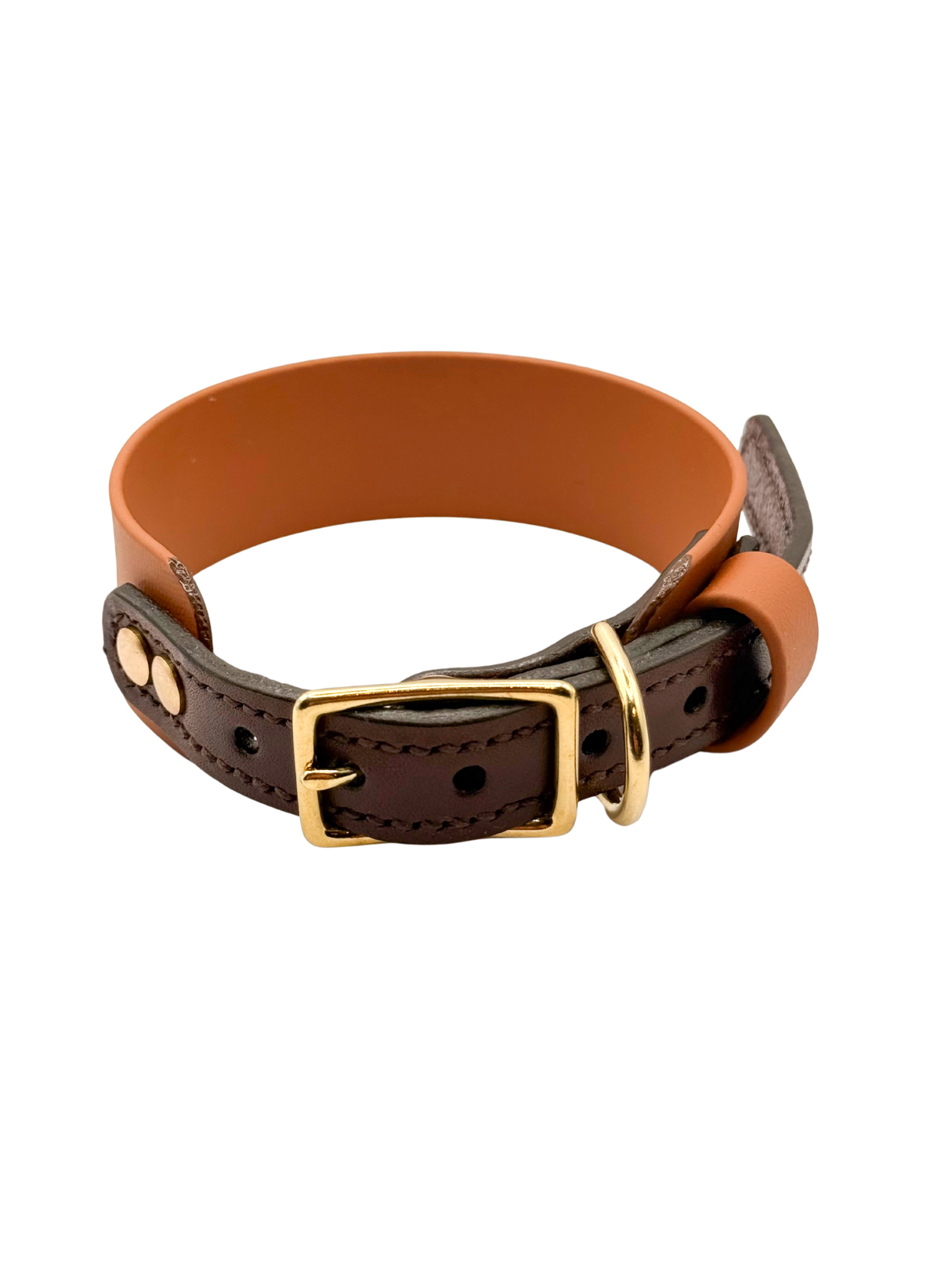 Obroża klasyczna z Biothane® z elementami skóry naturalnej garbowanej roślinnie.