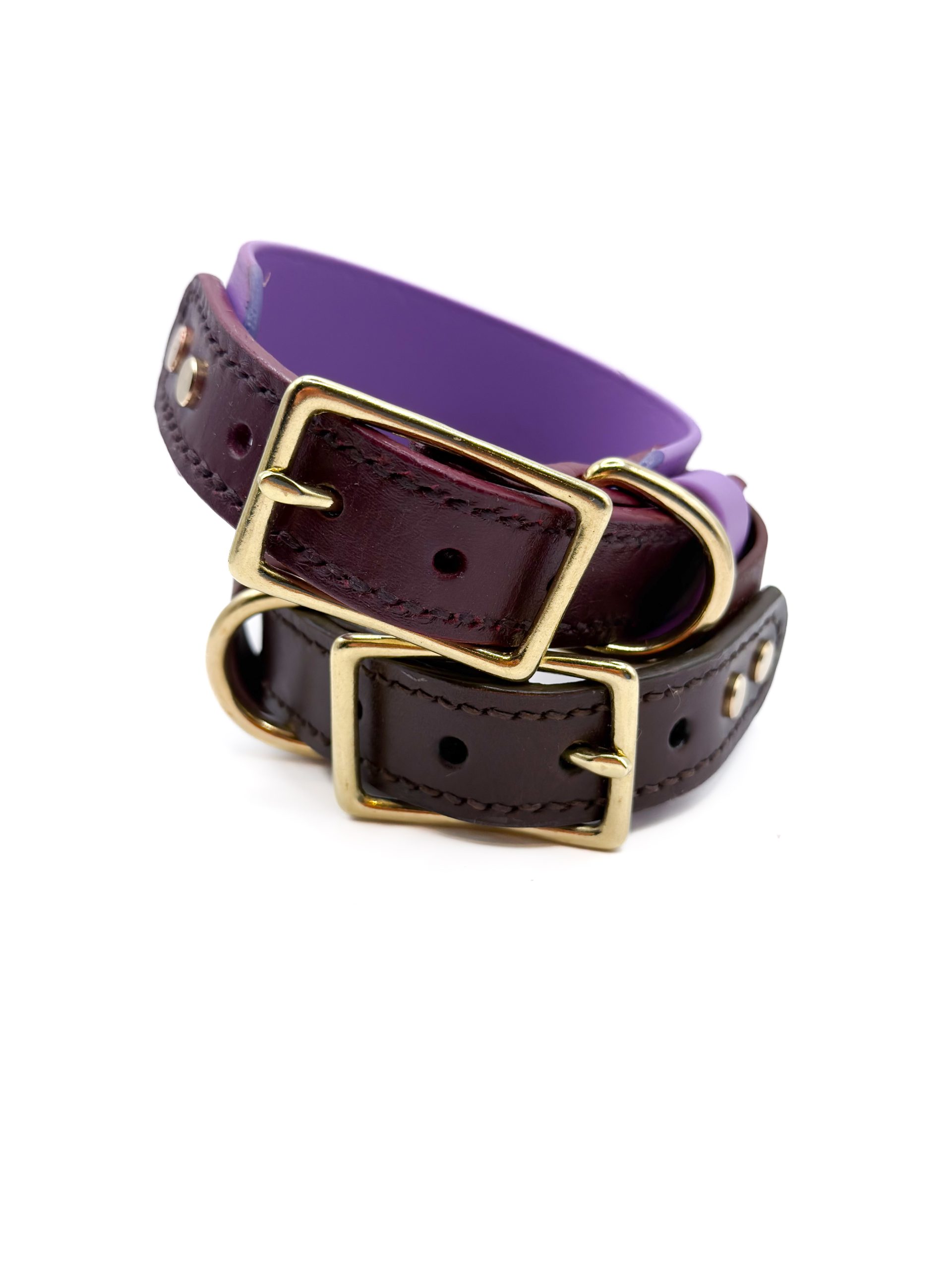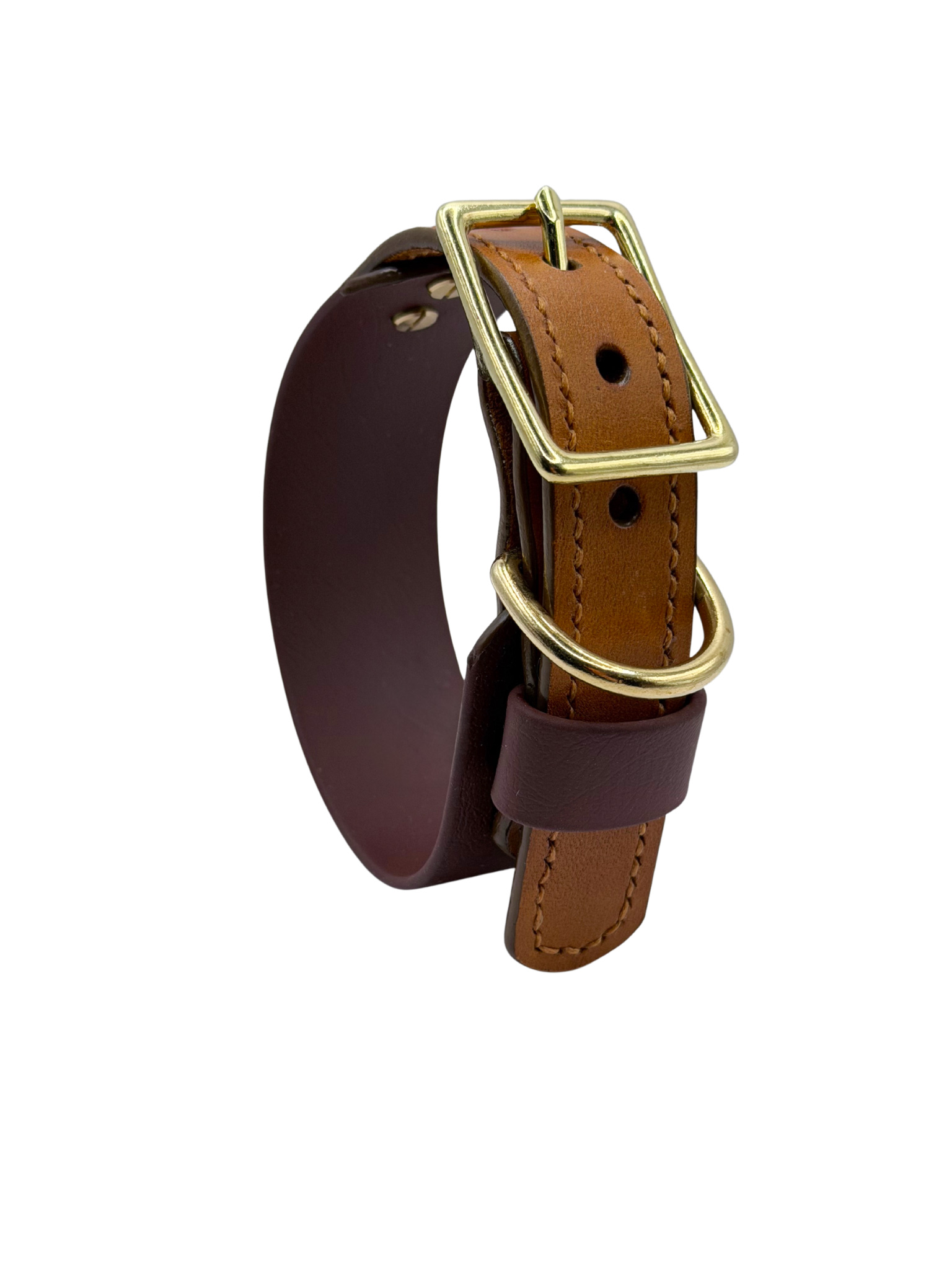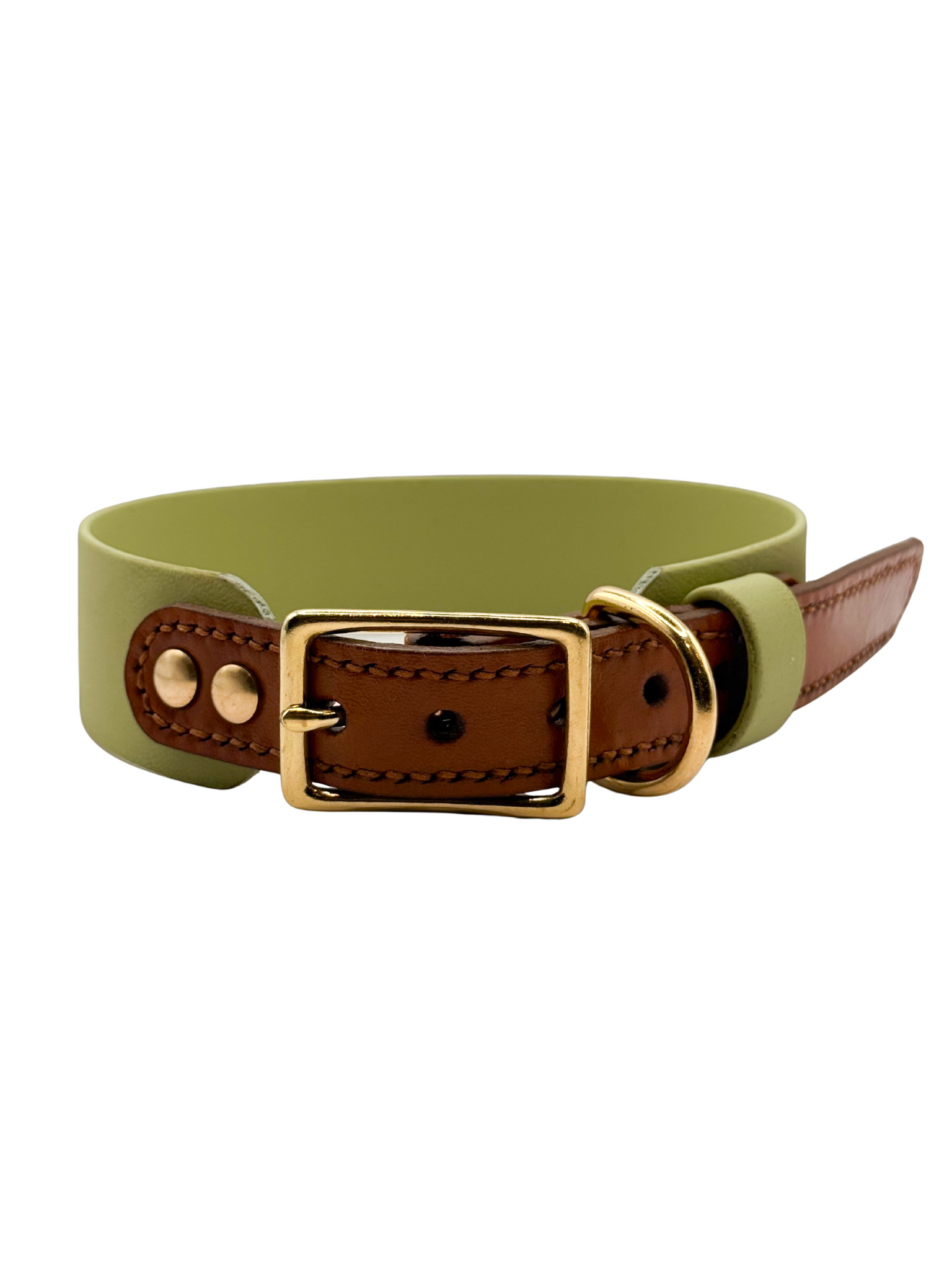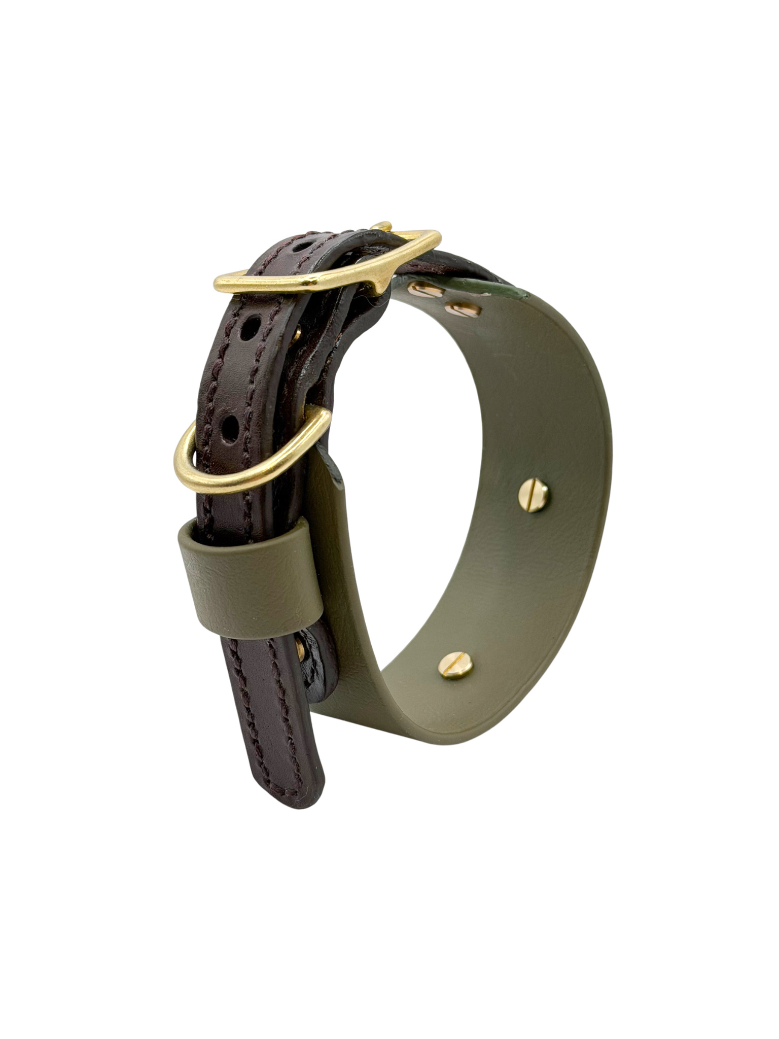 Obroża klasyczna z Biothane® z elementami skóry naturalnej garbowanej roślinnie.